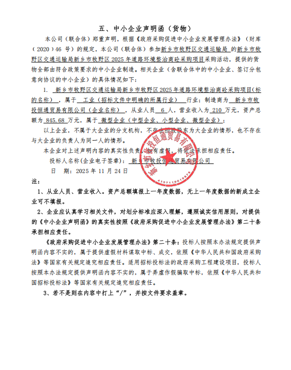 2、采购项目名称:新乡市牧野区交通运输局新乡市牧野区2025年道路环境整治商砼采购项目
